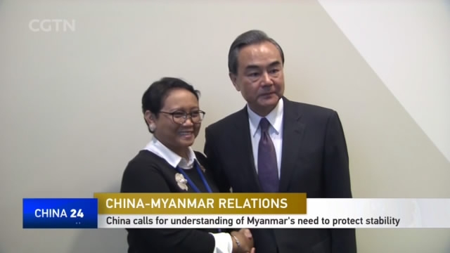Wang Yi also met his Indonesian counterpart Retno Marsudi on Tuesday, calling for understanding of Myanmar's need to protect stability.