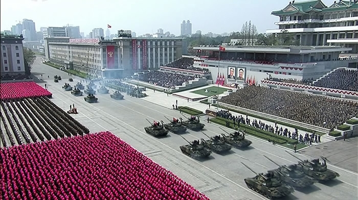 A view of the military parade in Pyongyang on April 15, 2017. /CFP Photo