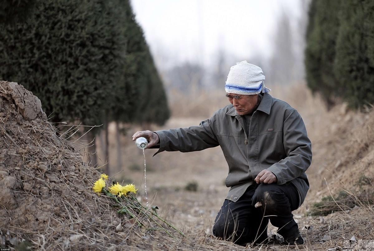 He visits their graves every traditional Chinese festival, sweeping the tombs, removing weeds, and offering yellow chrysanthemums. On Spring Festival and Qingming Festival, Miao brings special food and Chinese white wine.