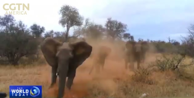 Screenshot of a viral video of elephants running on a prairie. /CGTN Photo