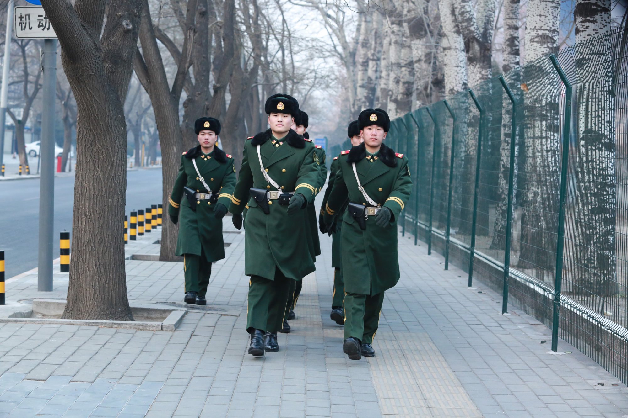 Security guards patrolling around the embassy area in Beijing in December, 2016. /VCG Photo