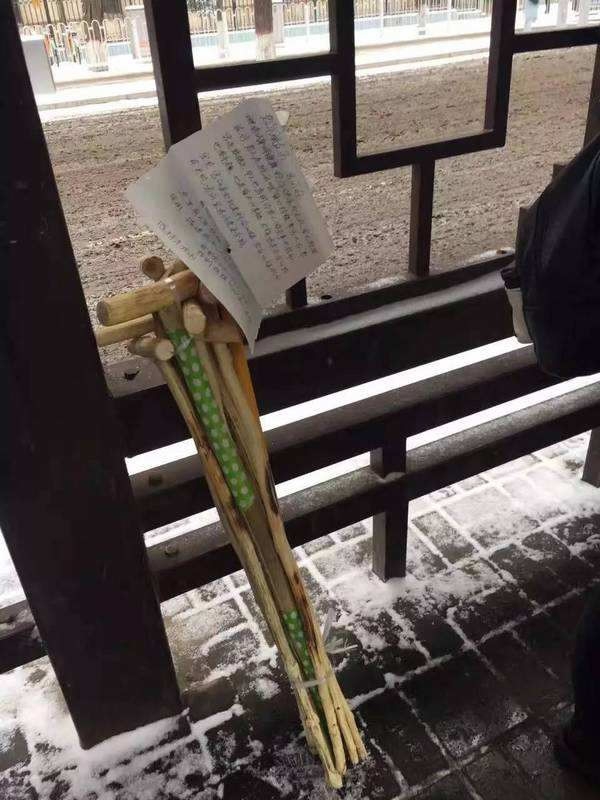 When you pass by a bus station in Taiyuan, north China’s Shanxi Province, keep an eye out for a bunch of wood canes together with a letter attached to them.