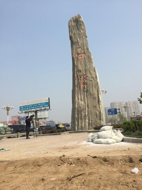 A statue read Baigou in the town situated next to the planned Xiongan New Area. /CGTN Photo