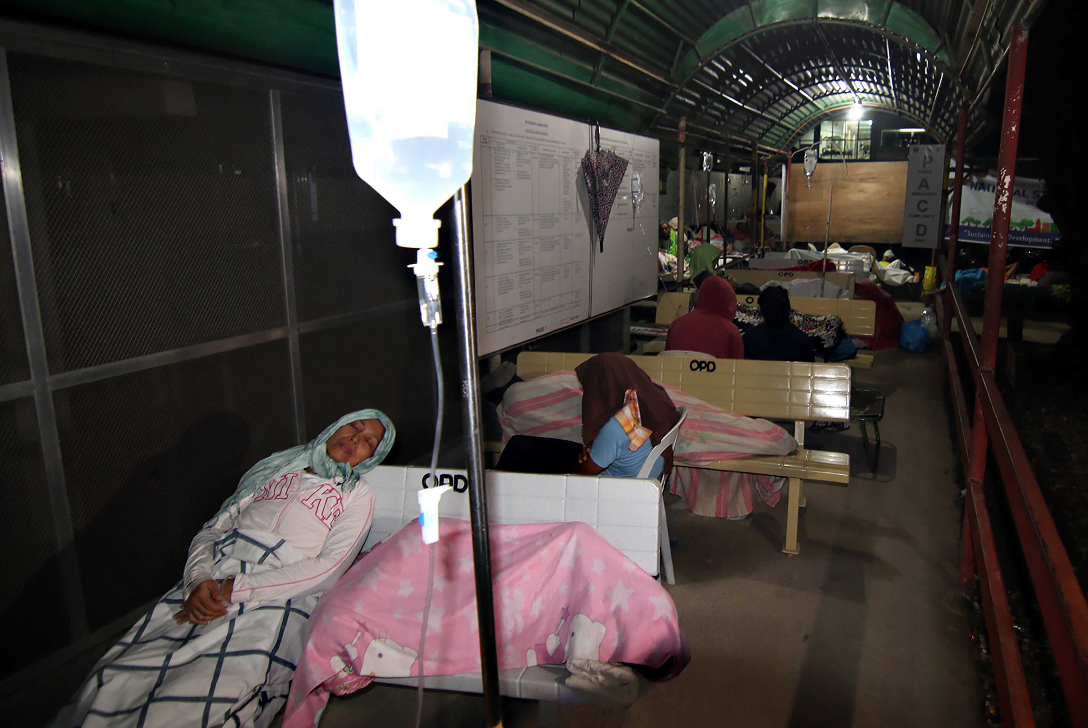 Hospital patients take shelter in a pedestrian-waiting shed for safety after an earthquake struck overnight in Surigao City, in southern island of Mindanao, February 11, 2017. /AFP Photo