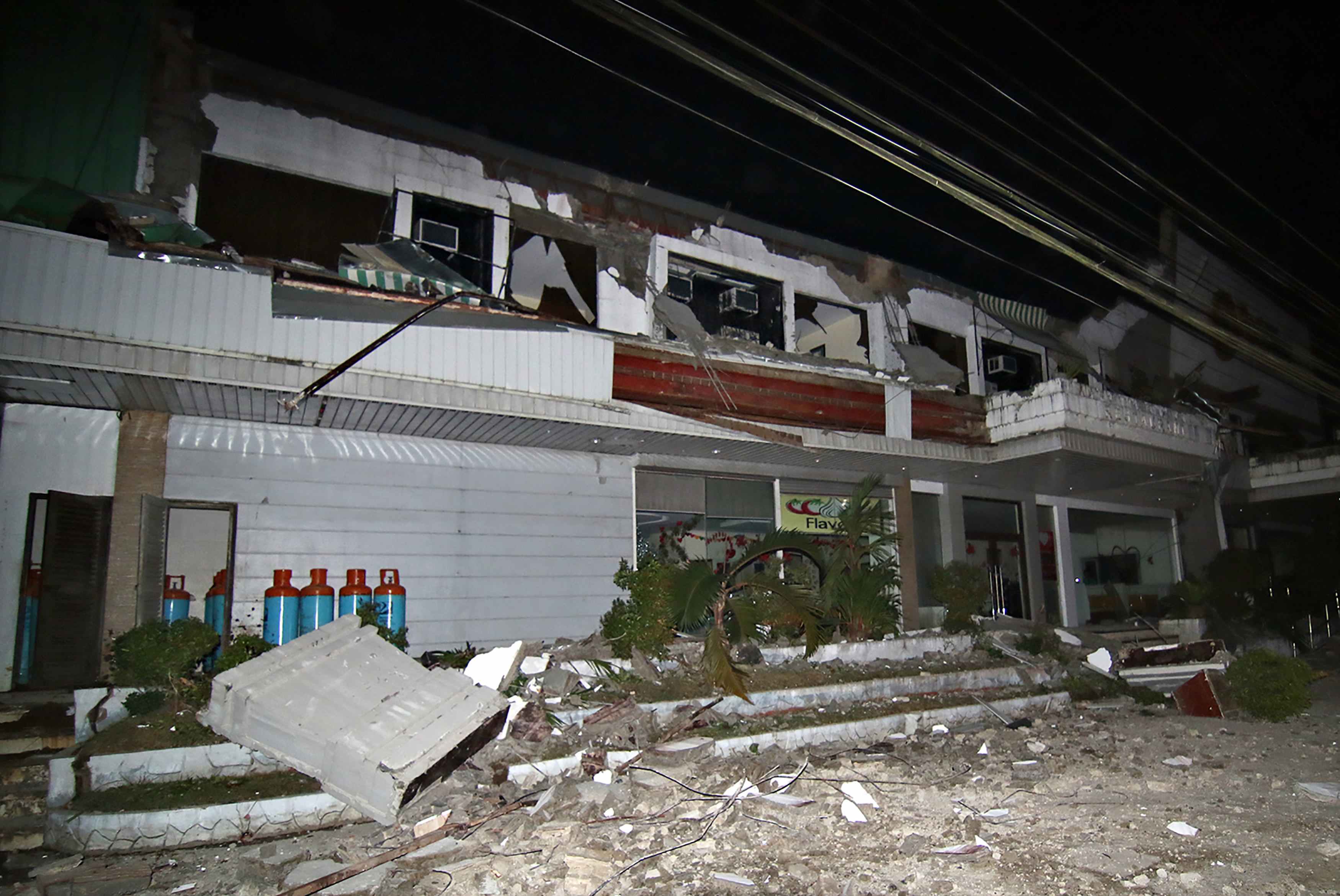 Debris lies next to a destroyed hotel after an earthquake struck overnight in Surigao City, in southern island of Mindanao, early February 11, 2017. /AFP Photo