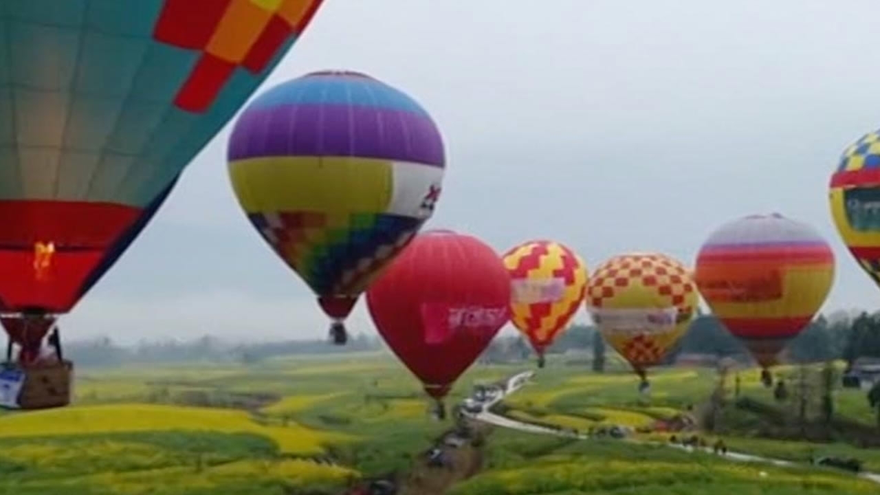 16 couples have tied the knot on board hot air balloons over an amazing sea of flowers in in Tengchong county in Yunnan Province, southwest China.