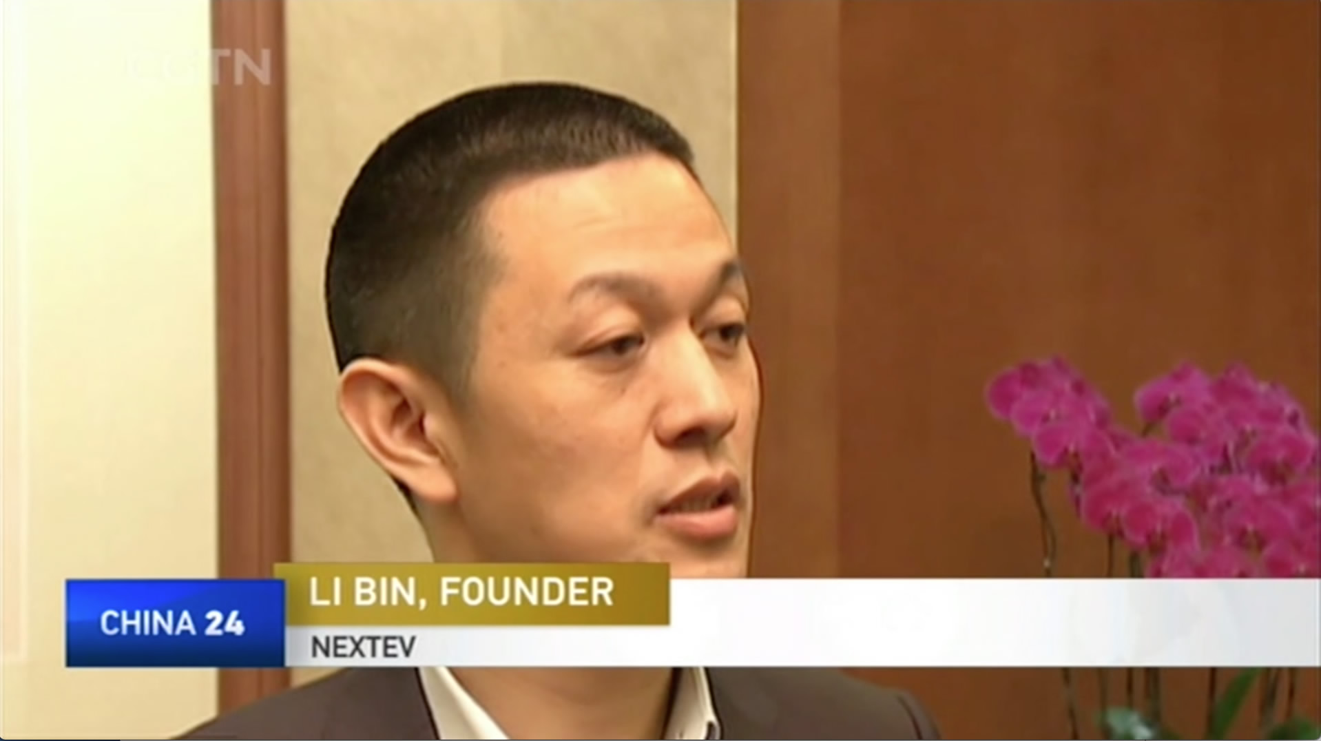 Screengrab shows Li Bin, founder of an electric car company NextEV.