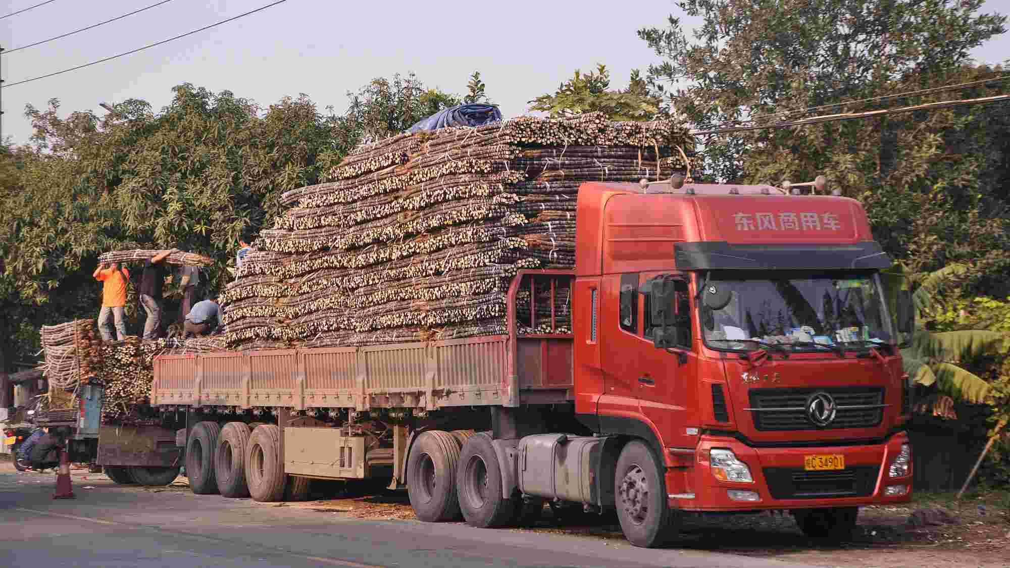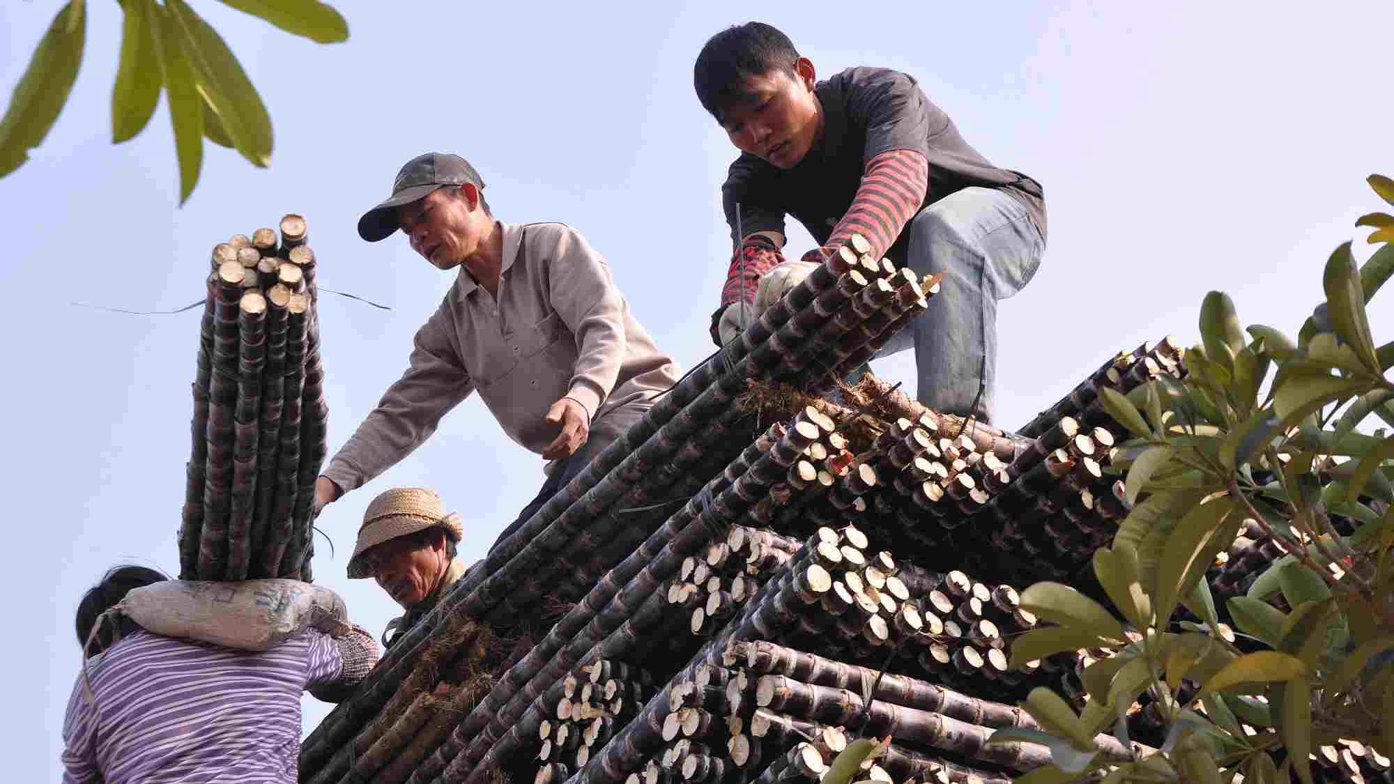 Farmers load sugar canes in south China's Guangdong Province. /VCG Photo