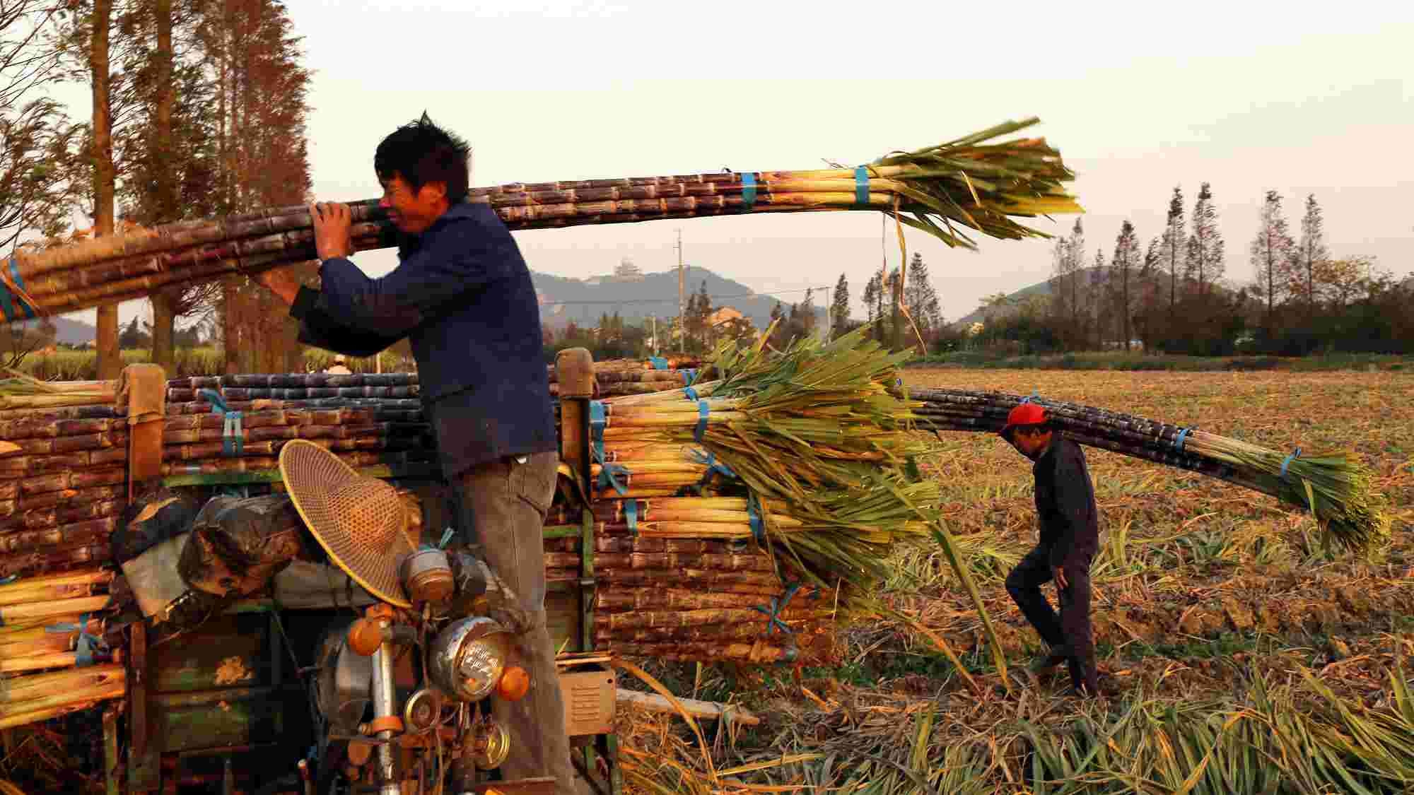 Farmers harvest sugar cane in east China's Zhejiang Province. /VCG Photo