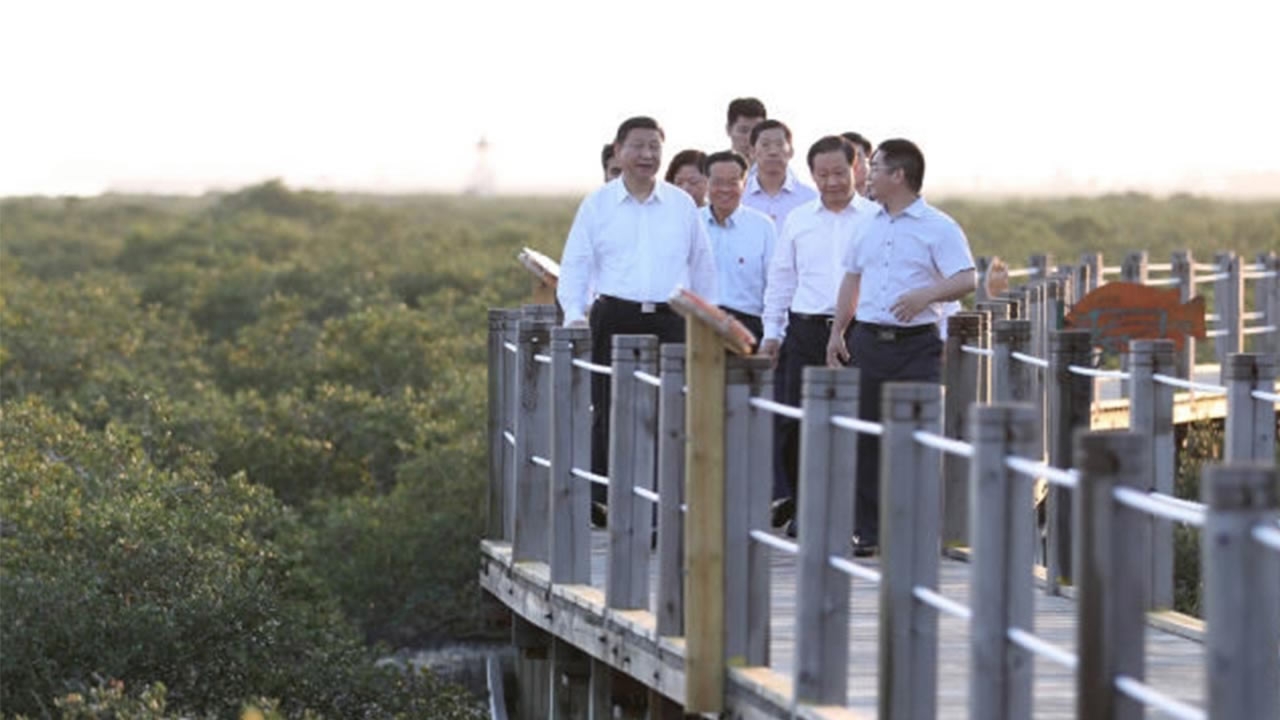 Xi also inspected a mangrove conservation area in the Beihai Golden Bay, where