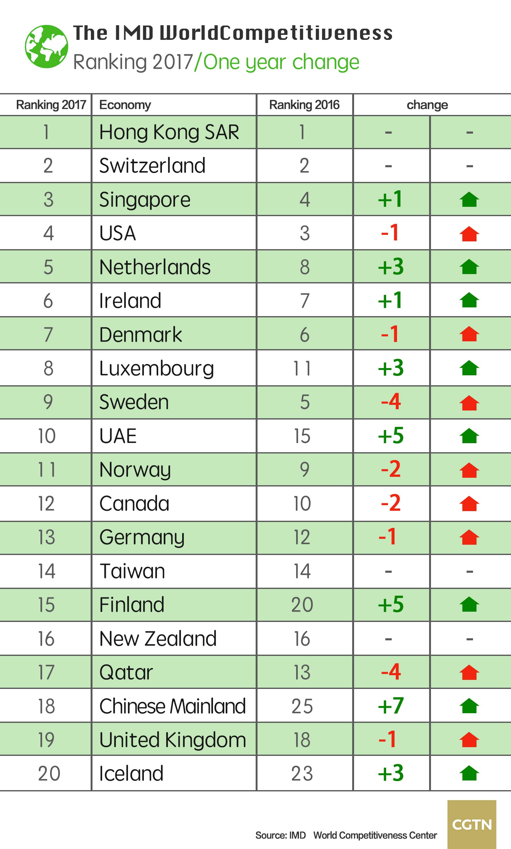 Explaining China's accelerating ascension on the list, Bris said this "can be traced to its dedication to international trade. This continues to drive the economy and the improvement in government and business efficiency."