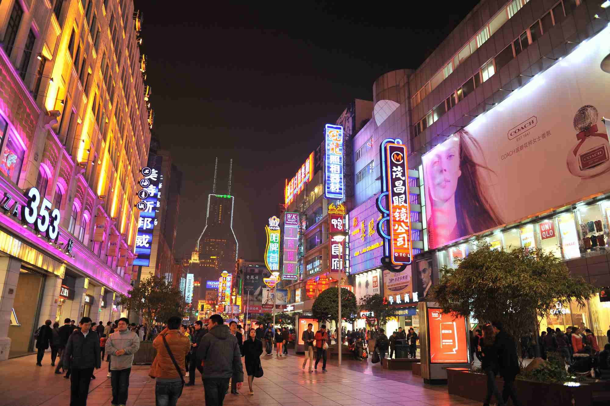 Night scene at Nanjing Road commercial center in Shanghai. /CFP Photo