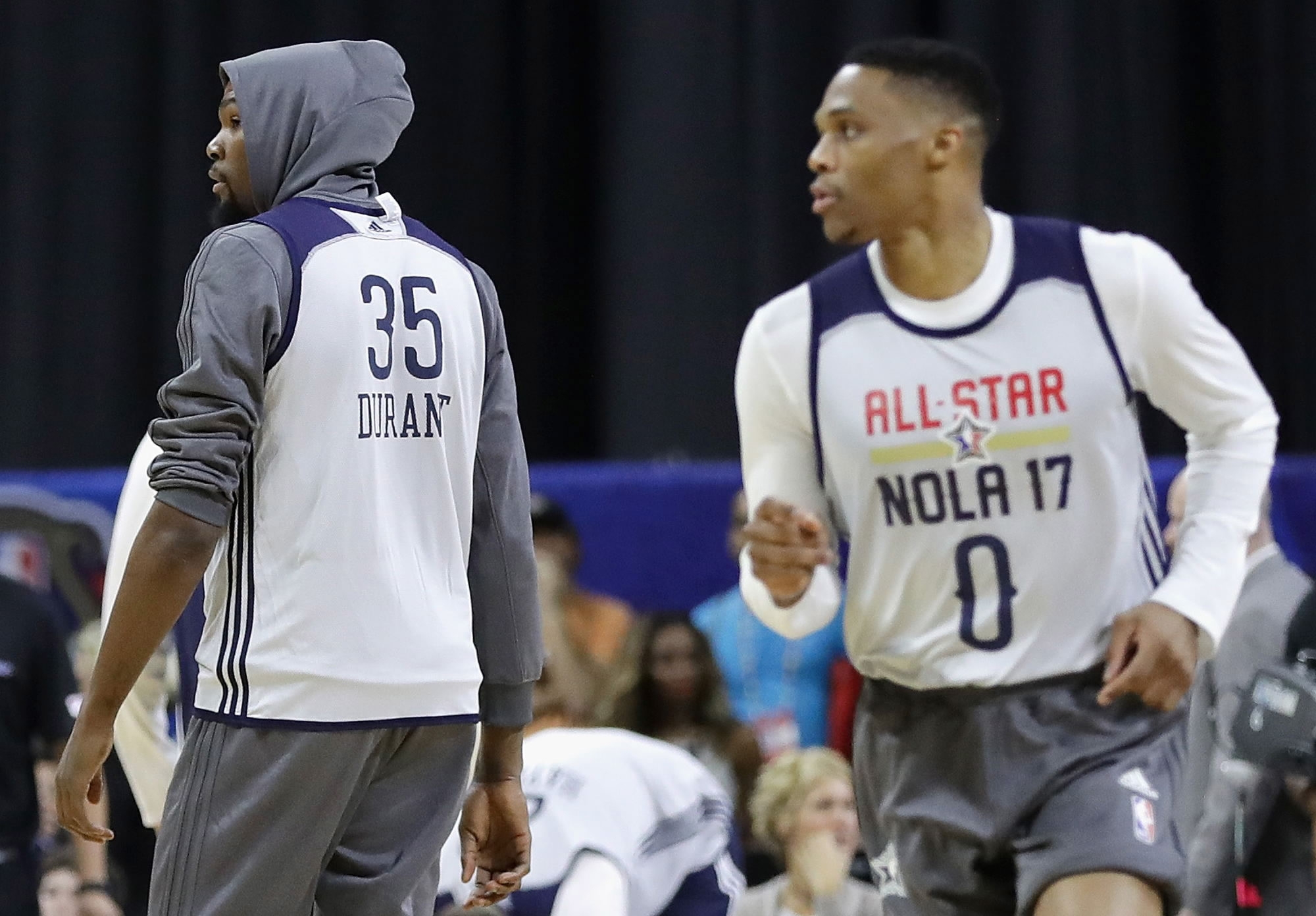 Durant fed Westbrook an alley-oop, one minute after Westbrook entered the court. At that moment, a friendly foe received claps and cheers from the West All Stars.