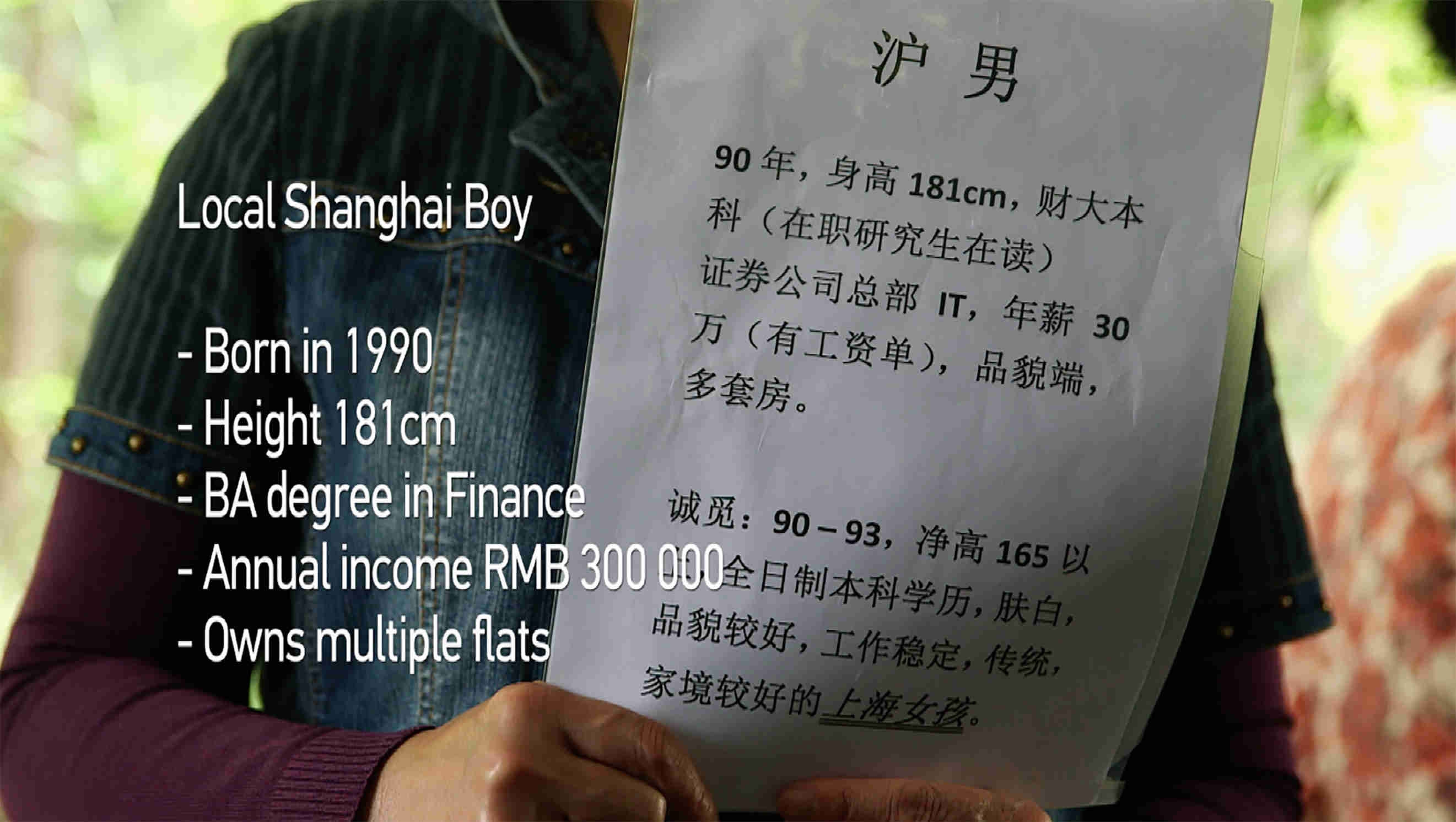 "If one reaches a certain age and hasn't yet got married or had children, that's a terrible loss of face for parents,” explains Zhang Pengkun, professional matchmaker for China’s largest dating website, Baihe.