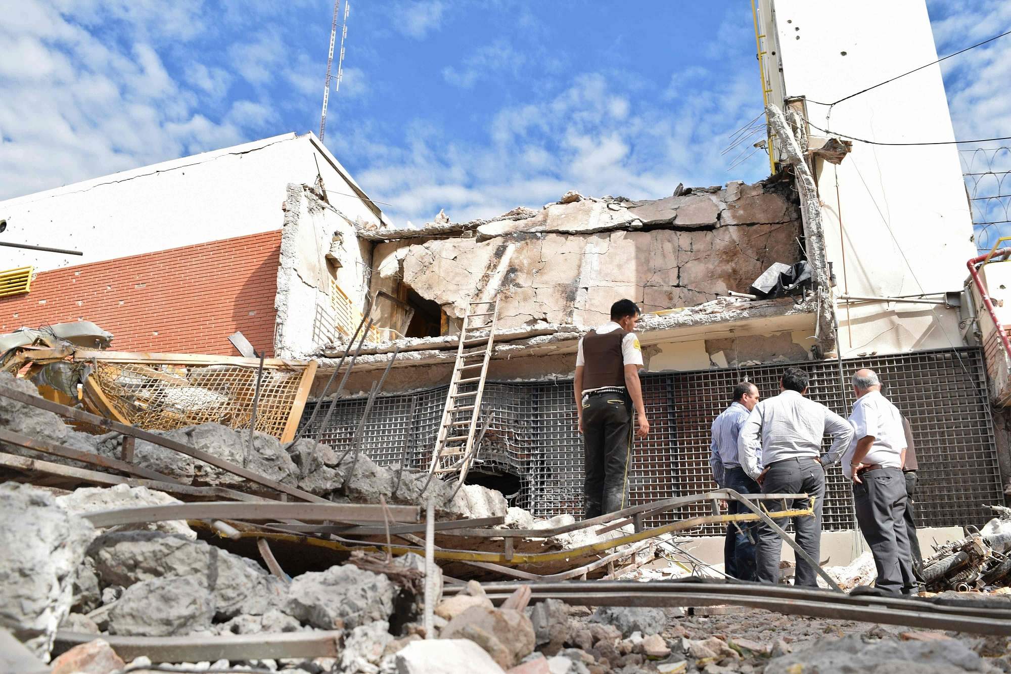 Policemen and an employee inspect the premises of multinational company Prosegur after a robbery in Ciudad del Este, Alto Parana department, Paraguay / CFP Photo