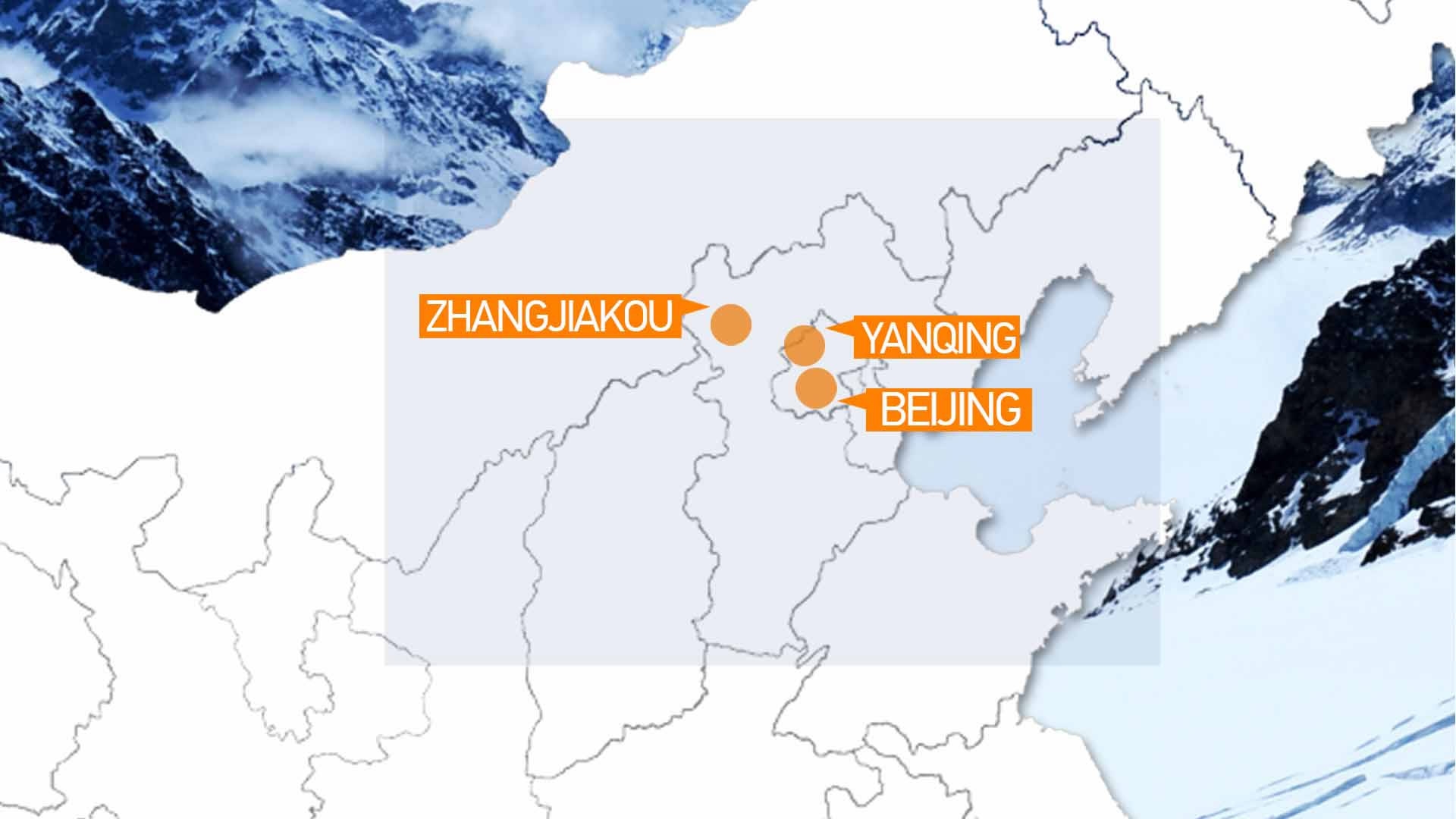 The 2022 Winter Games will be hosted at three venue clusters: downtown Beijing, the capital's northwestern Yanqing county and Zhangjiakou, a prefecture-level city in northwestern Hebei Province.