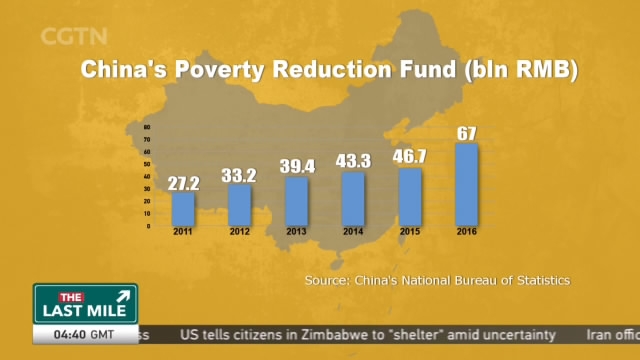 China has racked up impressive achievements in poverty alleviation in recent years. In 2011, China raised the poverty line to 2536 yuan, or just over 380 US dollars, a year per capita. By this standard, 122 million Chinese were living in poverty. This number has been steadily decreasing. Last year, it fell to 43.35 million. In 2011, the central government allocated 27 billion yuan for poverty reduction. In 2016, it rose to 67 billion yuan.