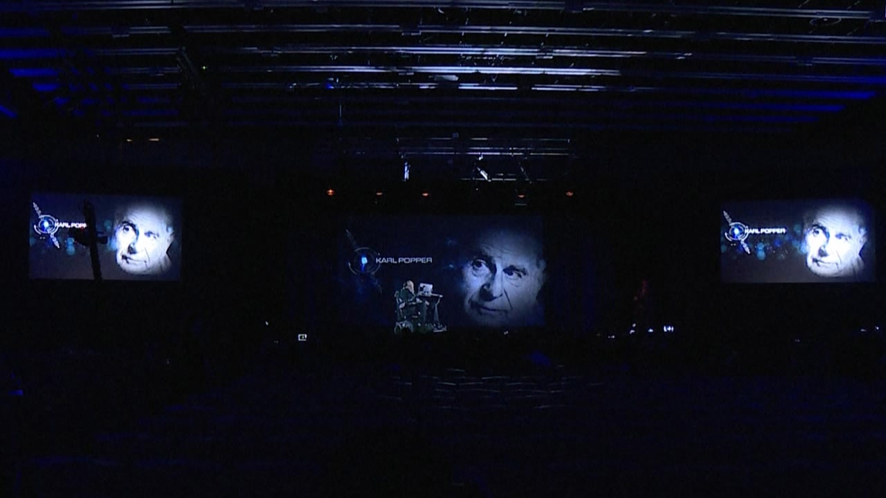 Renowned physicist Stephen Hawking, 75, appears via hologram to address an audience in Hong Kong/AFP Photo