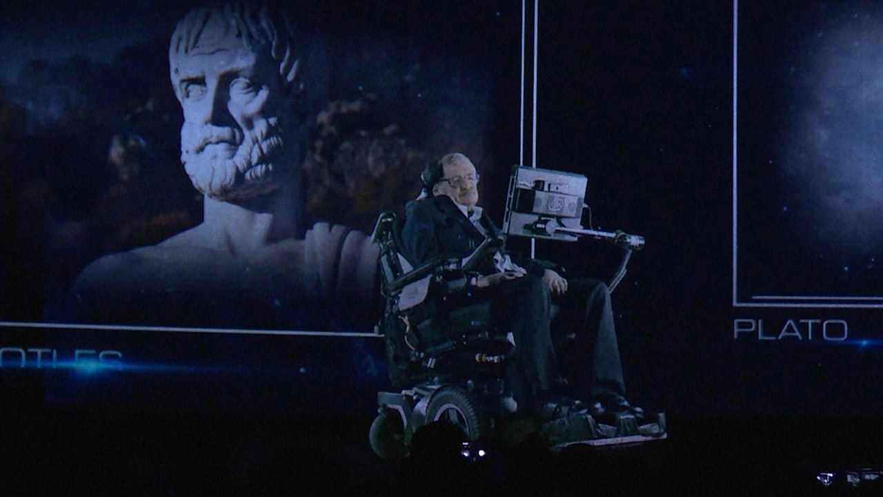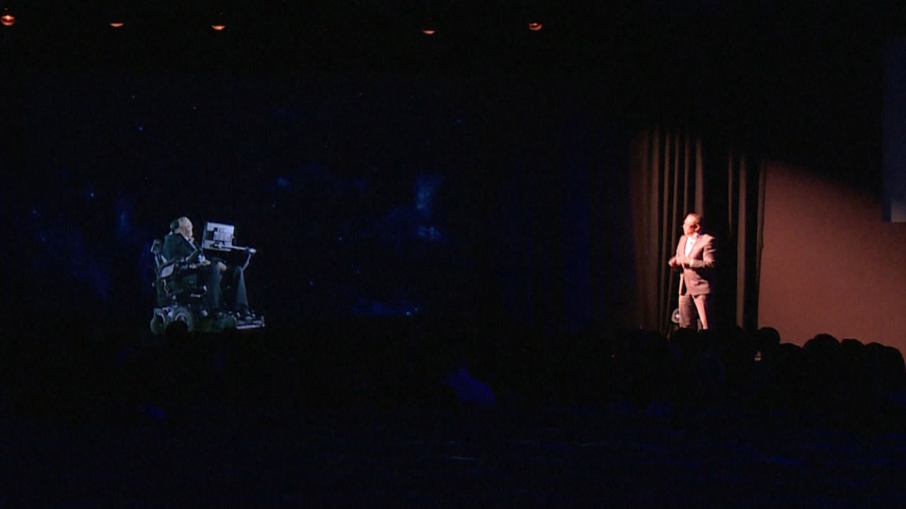 The British scientist appeared Friday before an audience of hundreds who cheered and snapped pictures with their phones as he discussed his career and answered questions about the possibility of life on other planets, the use of technology in education and the impact of Brexit on Britain.