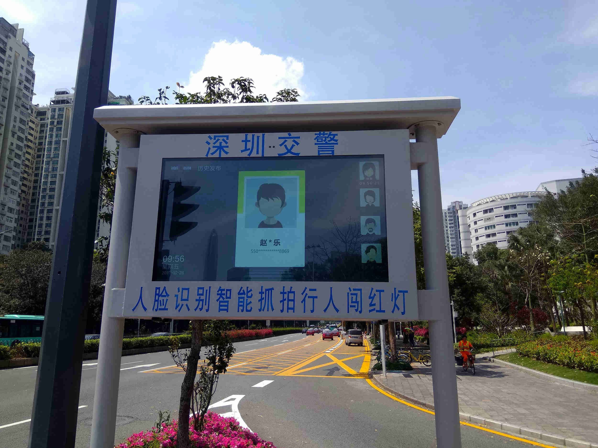 A display of a facial recognition system is seen at a crossroad in Shenzhen, Guangdong Province. /VCG Photo