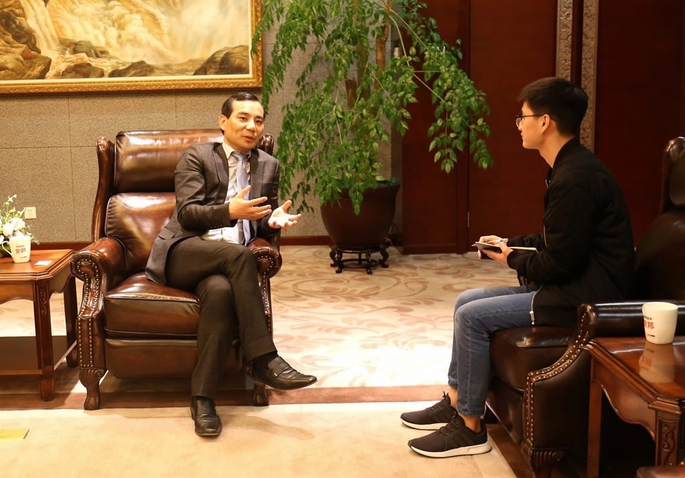 Wu Xiaohui, chairman of China's insurance conglomerate Anbang, during an interview with the Beijing News on April 26, 2017. /Beijing News Photo
