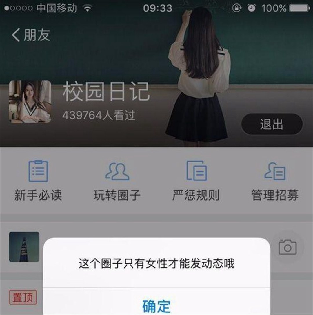 The Circle groups—“Campus Diary” and “White Collar Diary”—allow only female users to post messages and photos. ALIPAY