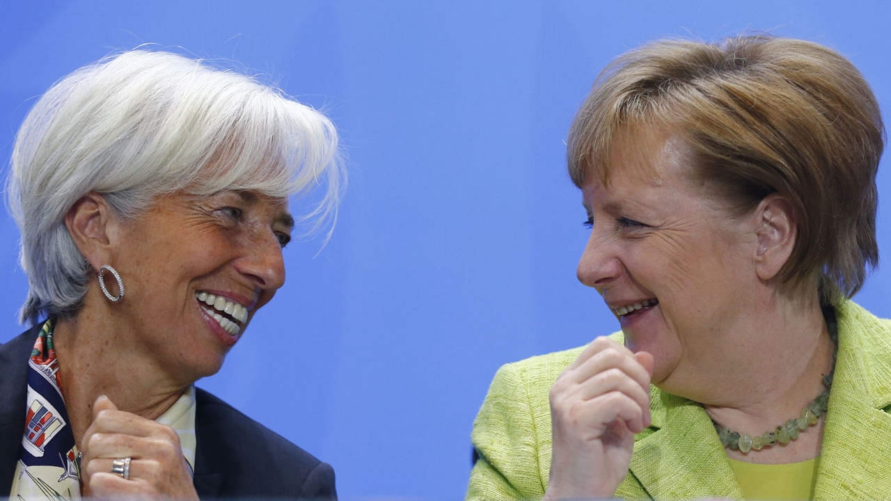 German Chancellor Angela Merkel (R) and Managing Director of the IMF Christine Lagarde attend a news conference following a meeting of the heads of international economy and finance organizations in Berlin, Germany, April 10, 2017. /VCG Photo