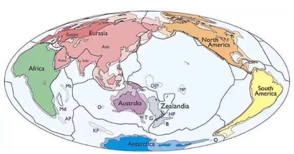 Zealandia is shown in grey to the east of Australia. /Photo from GSA TODAY