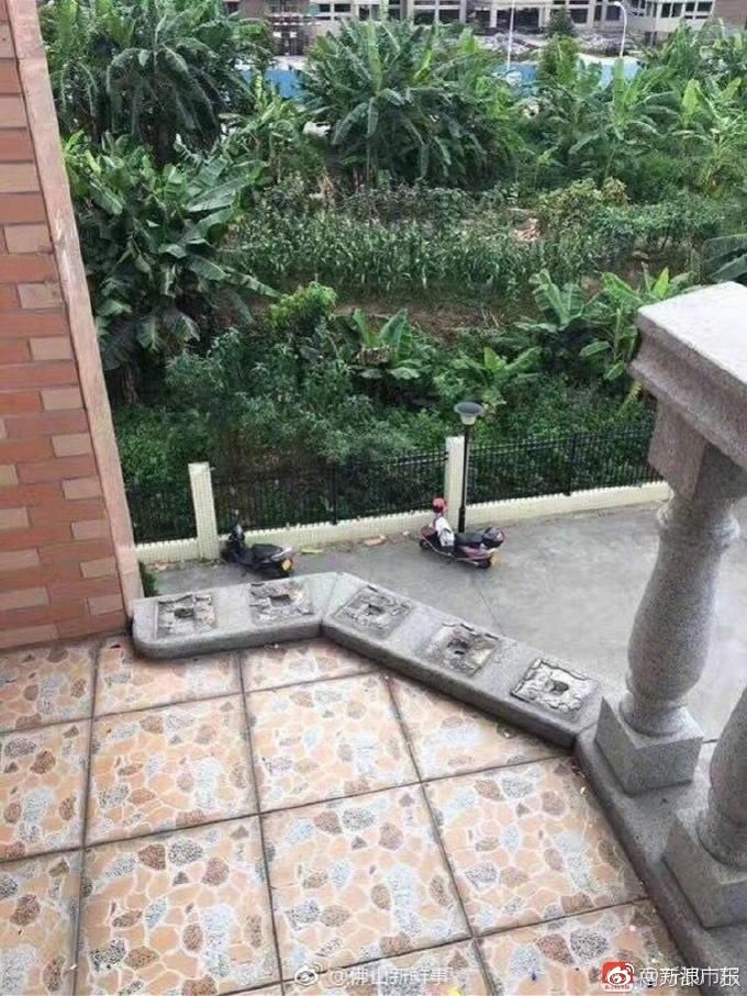 The breaking of balcony parapet led to Luo's fall on the ground. /Guangdong Daily Photo