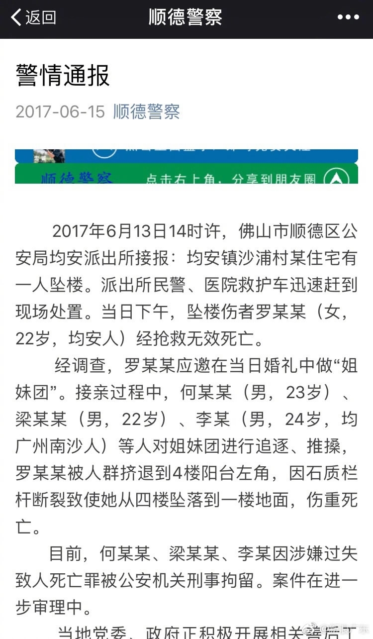 The three groomsmen have been now detained for negligence for causing Luo’s death, and a further investigation into the accident is underway, according to an announcement made by Shunde police on its official WeChat account.
