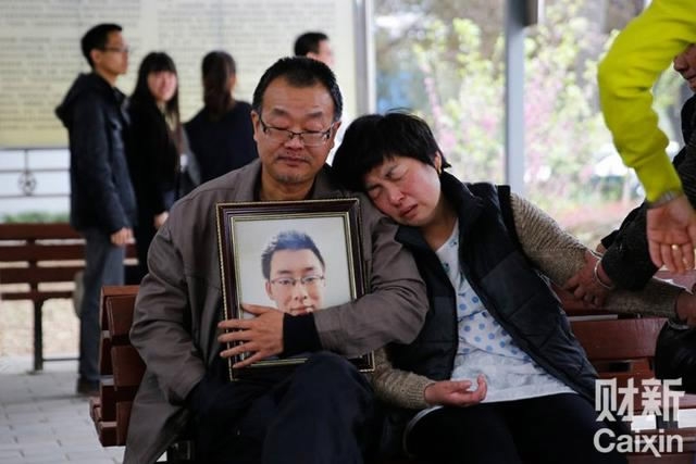 Wei Zexi's family mourns his death. /Caixin Photo