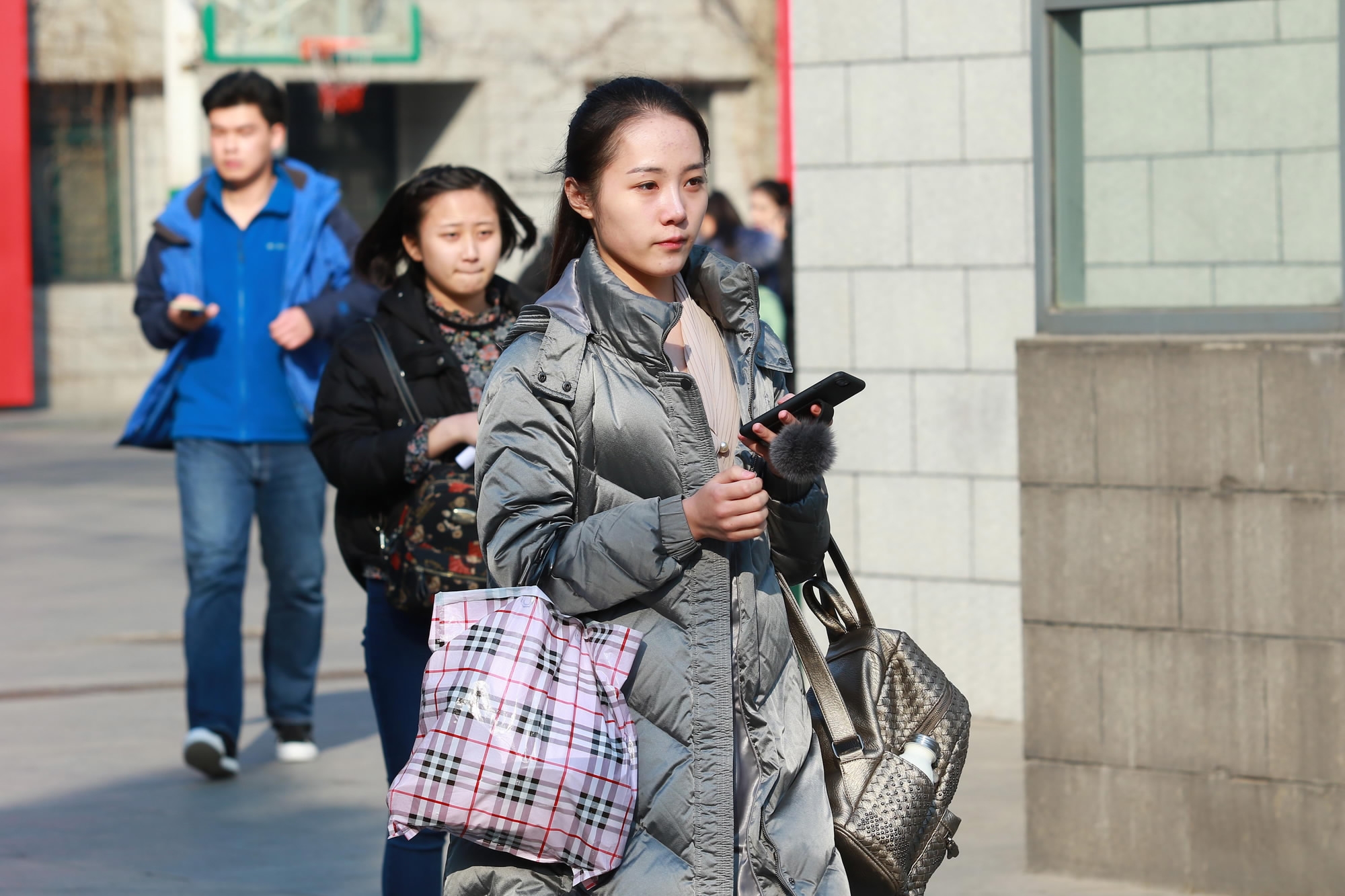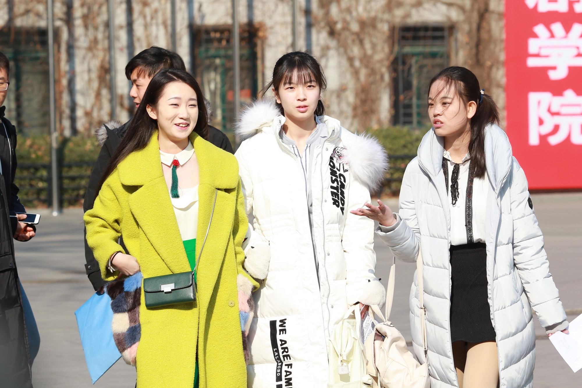 Girls walks into the Central Academy of Drama to take examination. /CFP Photo