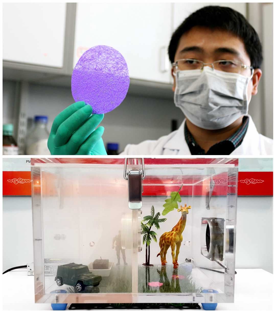 MOF filters can stick to different surfaces such as fabrics, foam and plastic. /Photo provided by Feng Xin