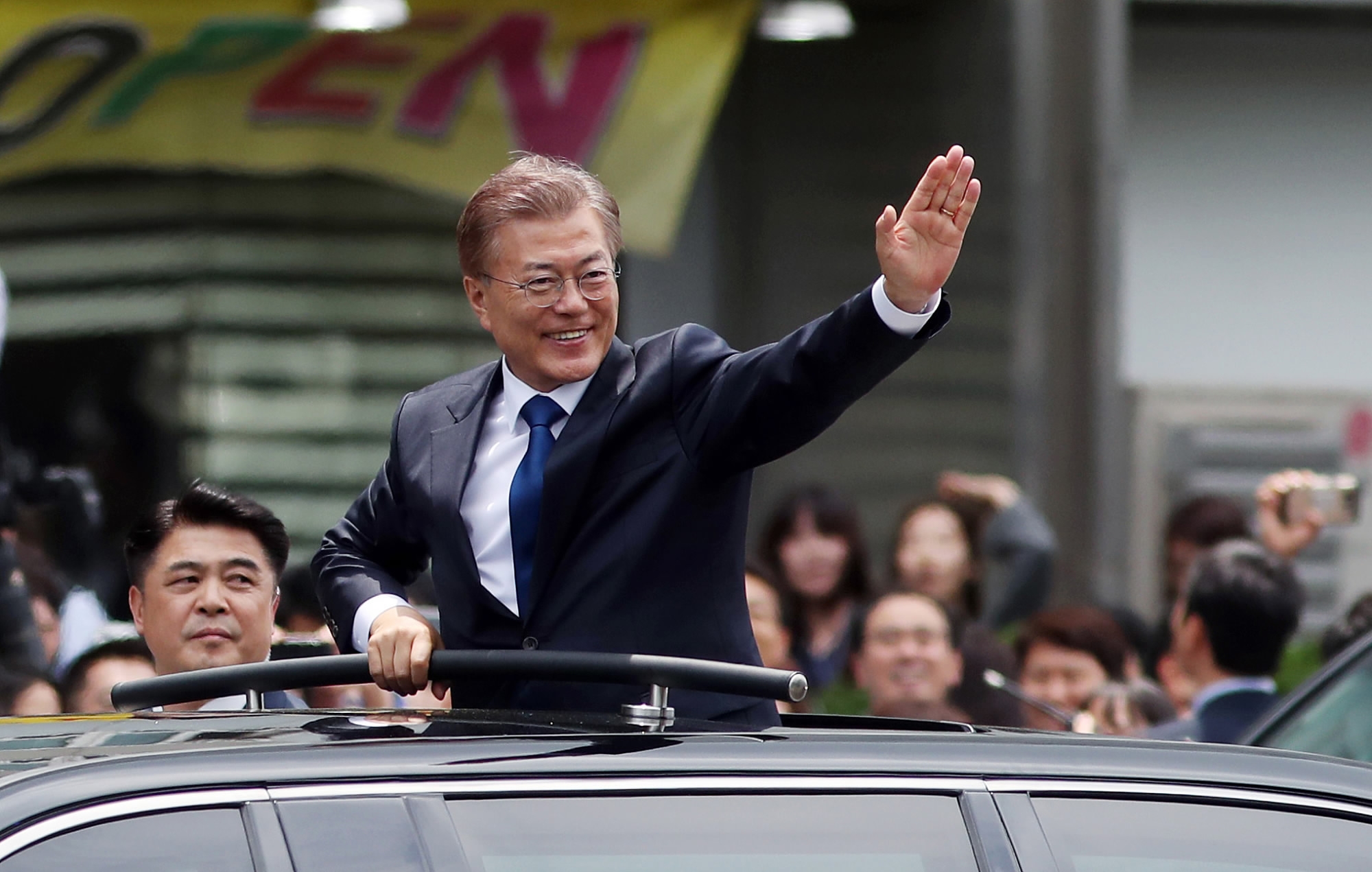 Moon Jae-in arriving at Cheong Wa Dae on May 10 after winning the election./VCG Photo