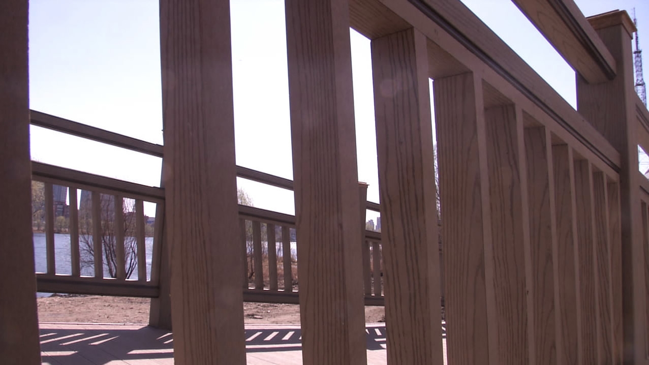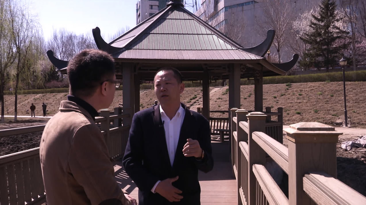 Li told CGTN his product has a much longer service life than natural wood, but since the price is similar to a wooden deck, it has been difficult for them to persuade the purchasing department of the local government, because they don't want the trouble of switching. /CGTN Photo