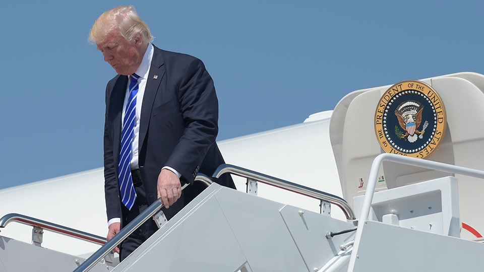 Trump sets out on the nine-day overseas trip amid controversy back home, where investigations are ongoing into whether his campaign associates collaborated with Russia to sway November's election.