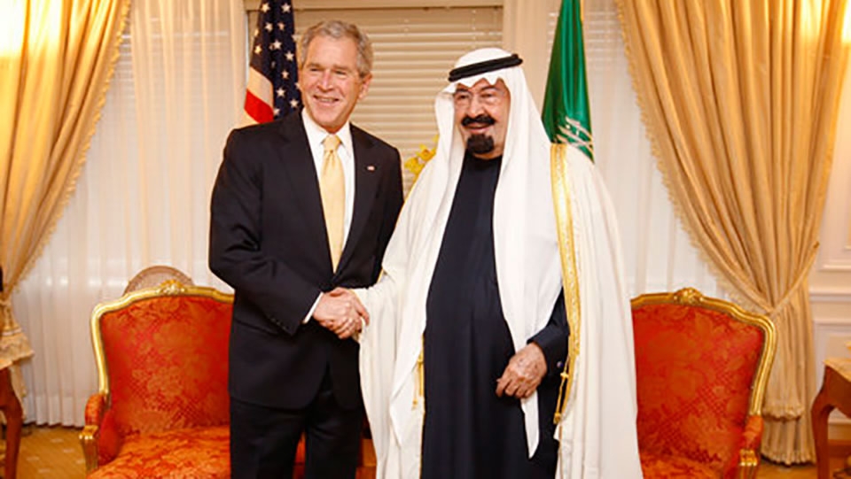 Terrorists hijack civilian airliners and fly them into the World Trade Center Twin Towers in New York, and the Pentagon. 15 of the 19 hijackers were Saudi citizens.