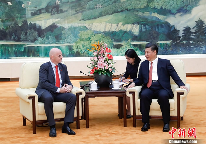Xi said he appreciated Infantino's commitment to developing the sport and his close attention to Chinese soccer since becoming the FIFA president in February 2016.