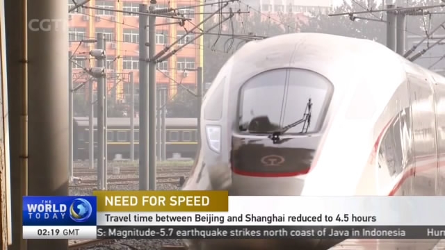 China now boasts the world's fastest bullet trains. The domestically developed train running between Beijing and Shanghai, called the Fuxing, on Wednesday increased its speed to a whopping 350 kilometers per hour. Our reporter Yang Chengxi felt the speed, traveling the route this morning.