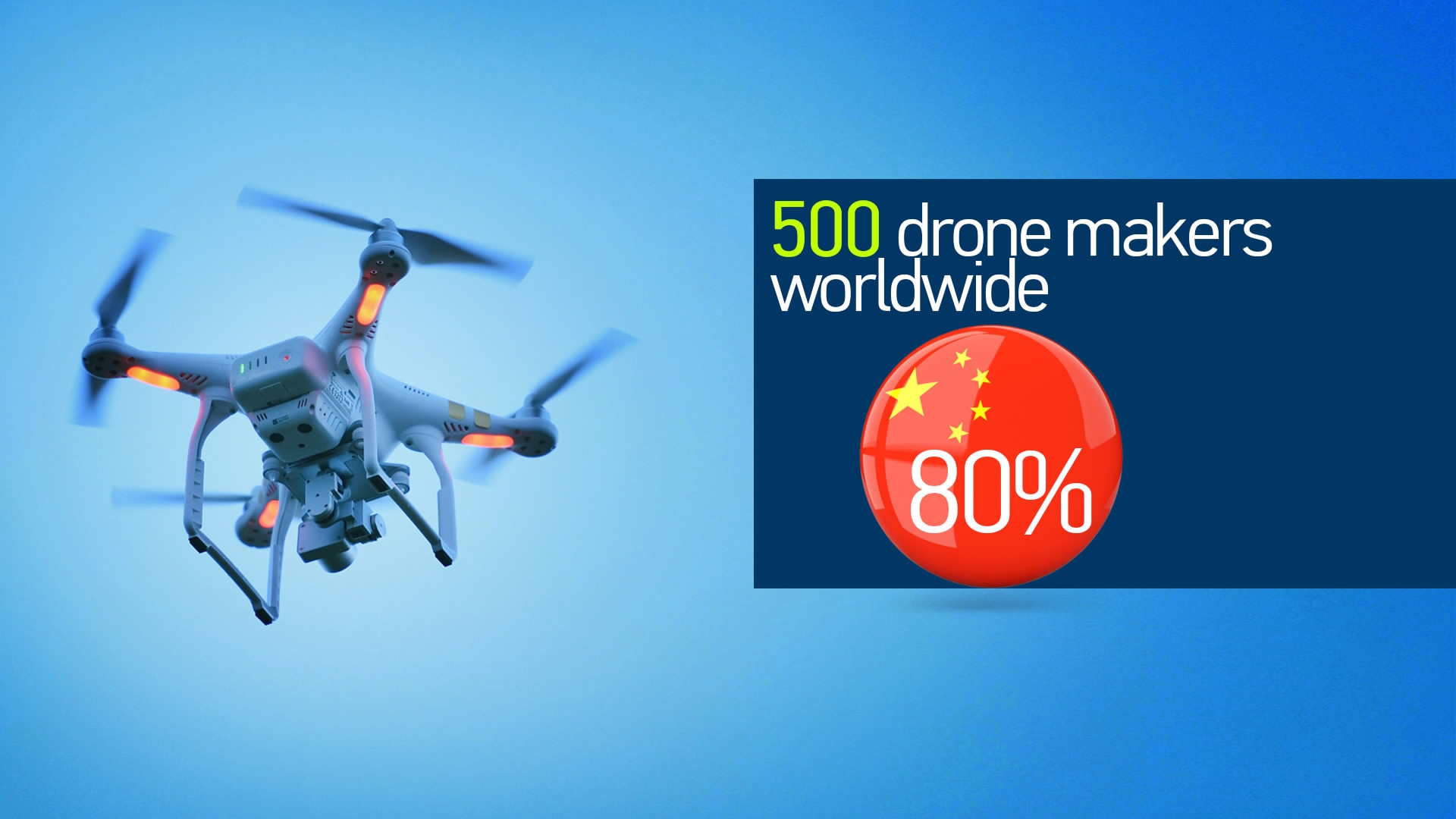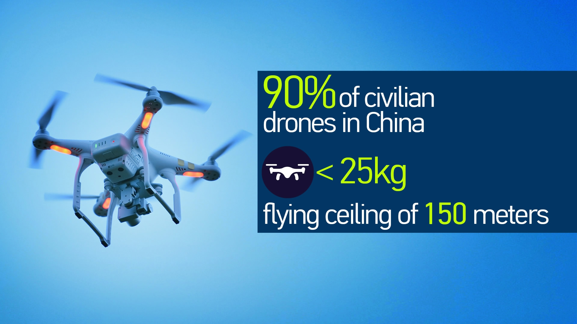 China is one of the biggest manufacturers and buyers of drones globally. Market research firm IDC says sales of commercial-quality drones in China will hit 950,000 units by 2019. At the same time, of the more than 500 drone makers worldwide, 80 percent are Chinese. The vast majority of drones being used here are lightweight and feature very simple functions. According to the Aircraft Owners and Pilots Association of China, nearly 90 percent of civilian drones in China weigh less than 25 kilograms and have a maximum altitude capability of 150 meters.