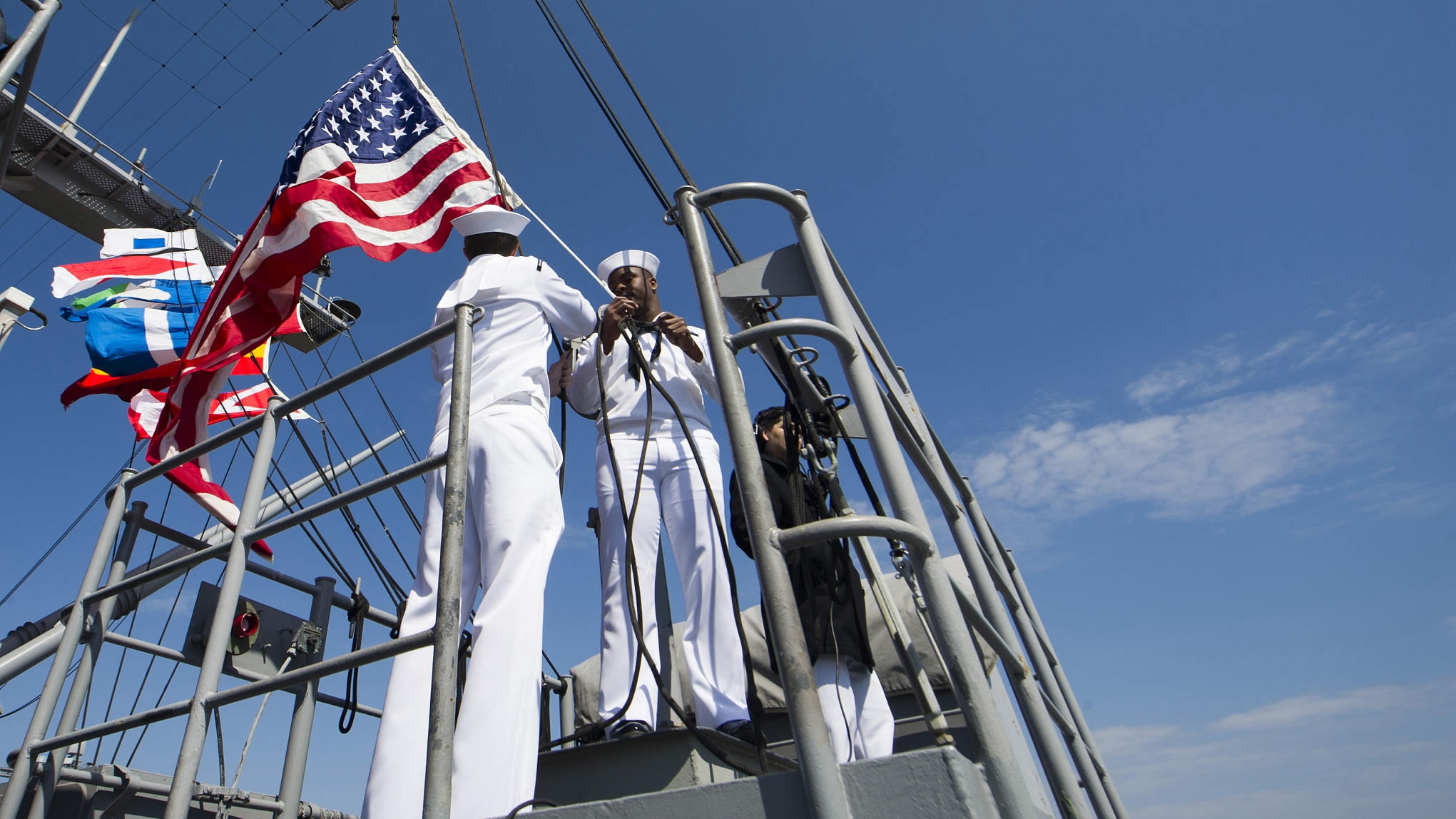 The guided-missile destroyer USS Arleigh Burke (DDG-51) departs Naval Station Norfolk as part of the Harry S. Truman Carrier Strike Group. About 6,500 sailors assigned to the Harry S. Truman Carrier Strike Group are departing Norfolk on April 11, 2018 for a deployment to Europe and the Middle East. /VCG Photo.