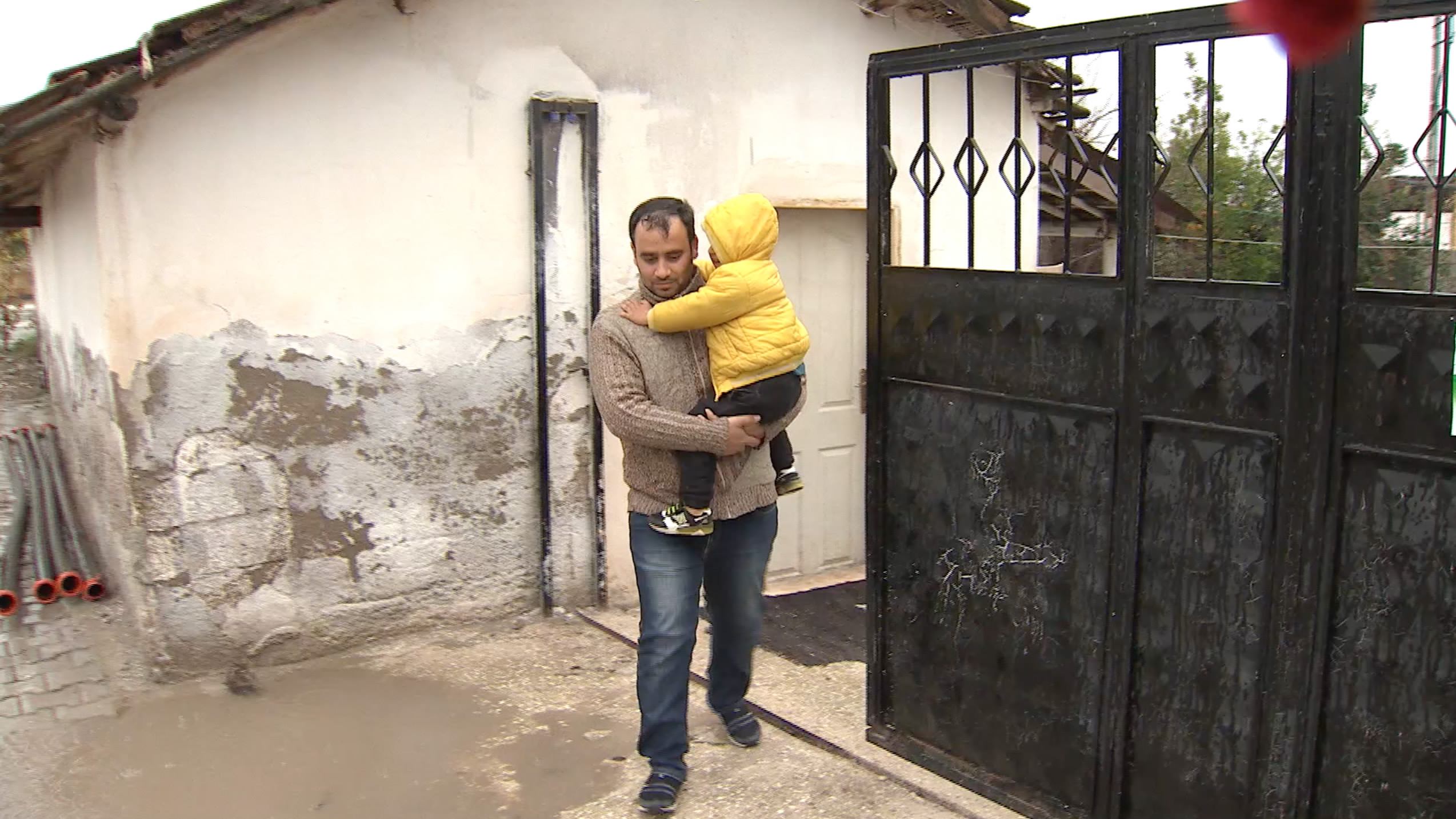 Huseyn Alfares with his son in Reyhanli. /CGTN Photo