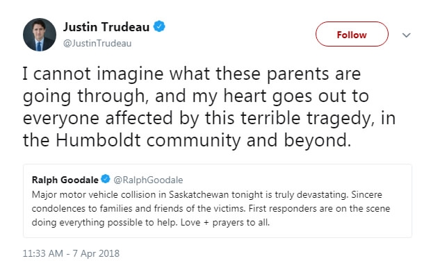 Canadian Prime Minister Justin Trudeau has tweeted his condolences, stating that he “cannot imagine what these parents are going through.”