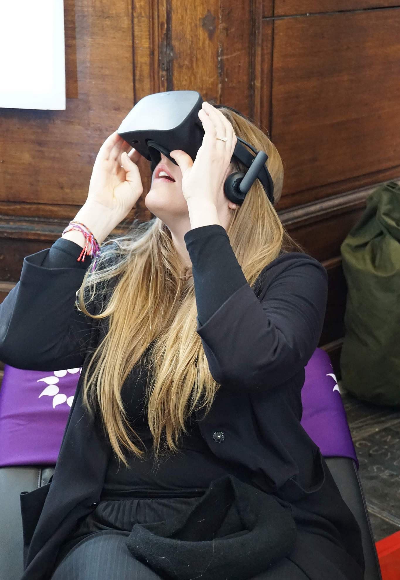 The inventors put a model of the device on display, together with a set of virtual reality glasses to give visitors a true-to-life experience of what it would be like to sit in the pod, before ultimately pressing the button.