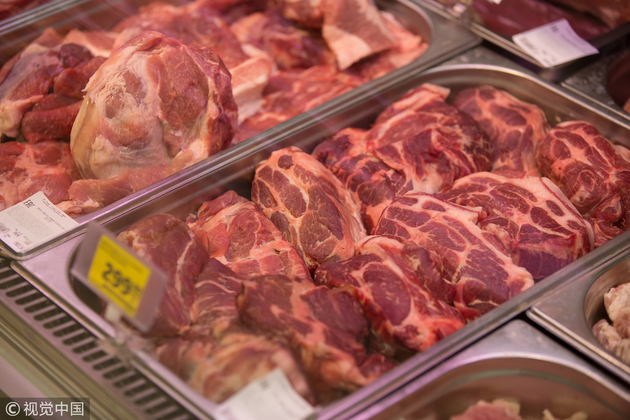 Cuts of fresh beef sit on display at the butcher's counter inside a Magnit PJSC hypermarket store at the Hanoi-Moscow trade center in Moscow, Russia, Feb. 28, 2018. /VCG Photo
