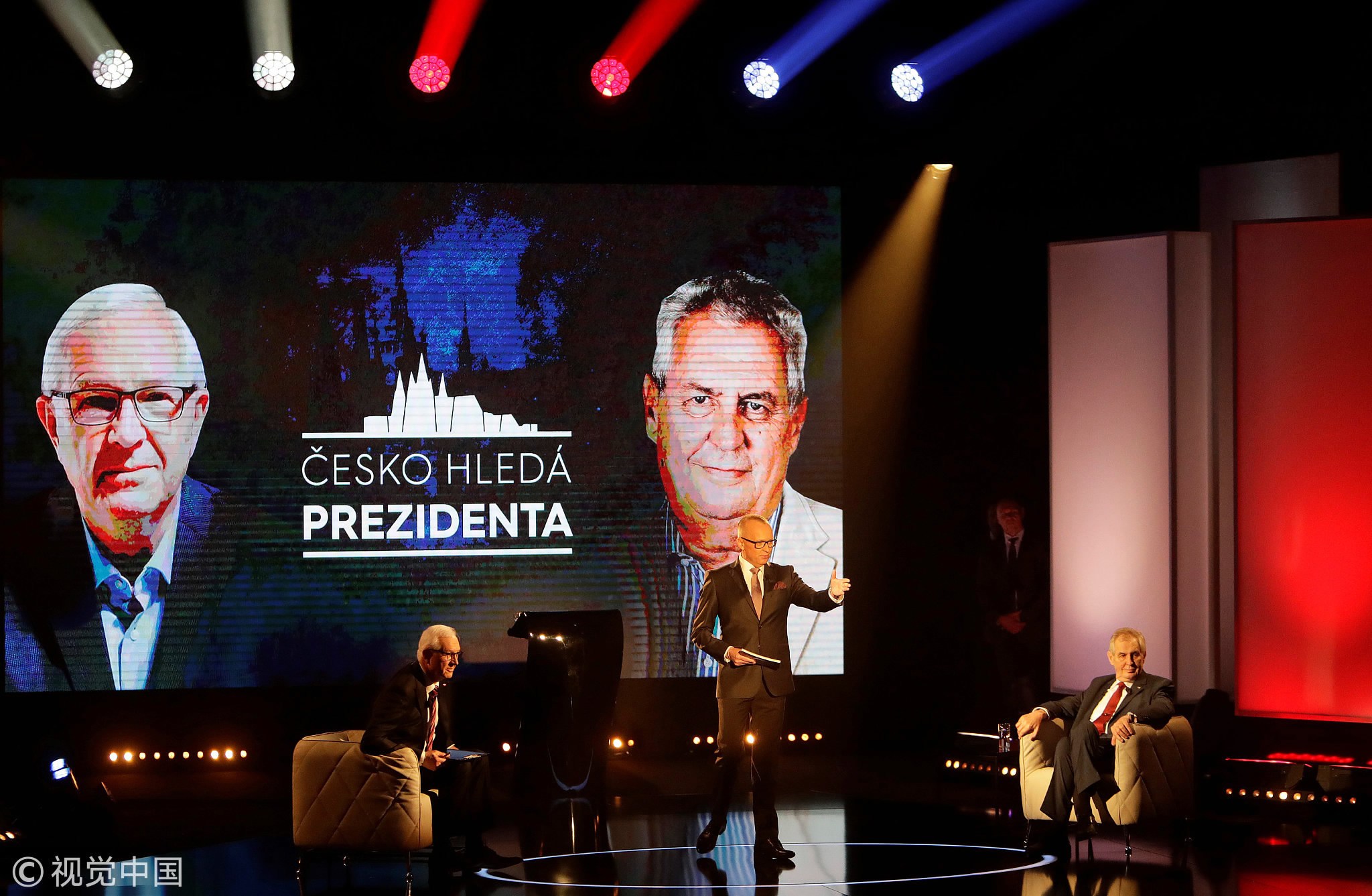 Czech presidential candidate Jiri Drahos and incumbent Milos Zeman participate in a televised debate ahead of an election run-off on January 23. /VCG Photo