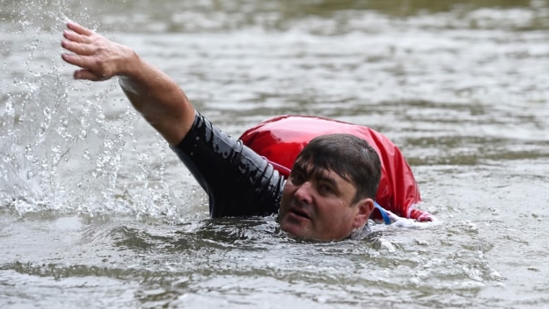 2) Sick of congested roads, German man swims to work