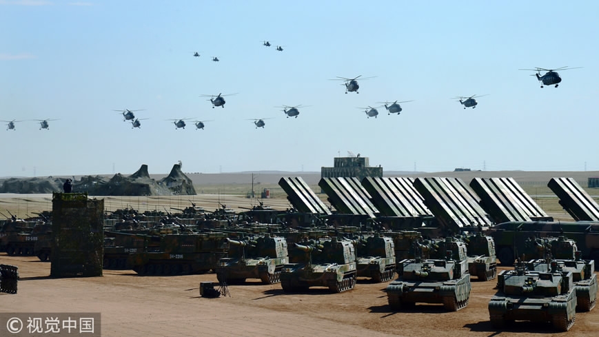 China held a grand military parade at Zhurihe training base in north China's Inner Mongolia Autonomous Region in July 2017. /CGTN Photo