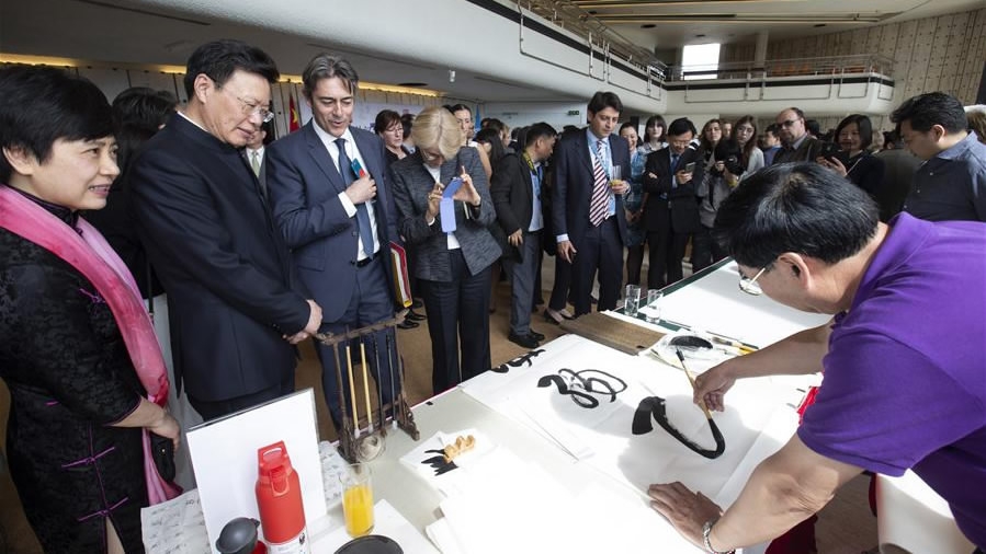 The exhibition "Charm of Chinese Culture: from Characters to Literature" at Palais des Nations in Geneva, Switzerland. /Xinhua Photo