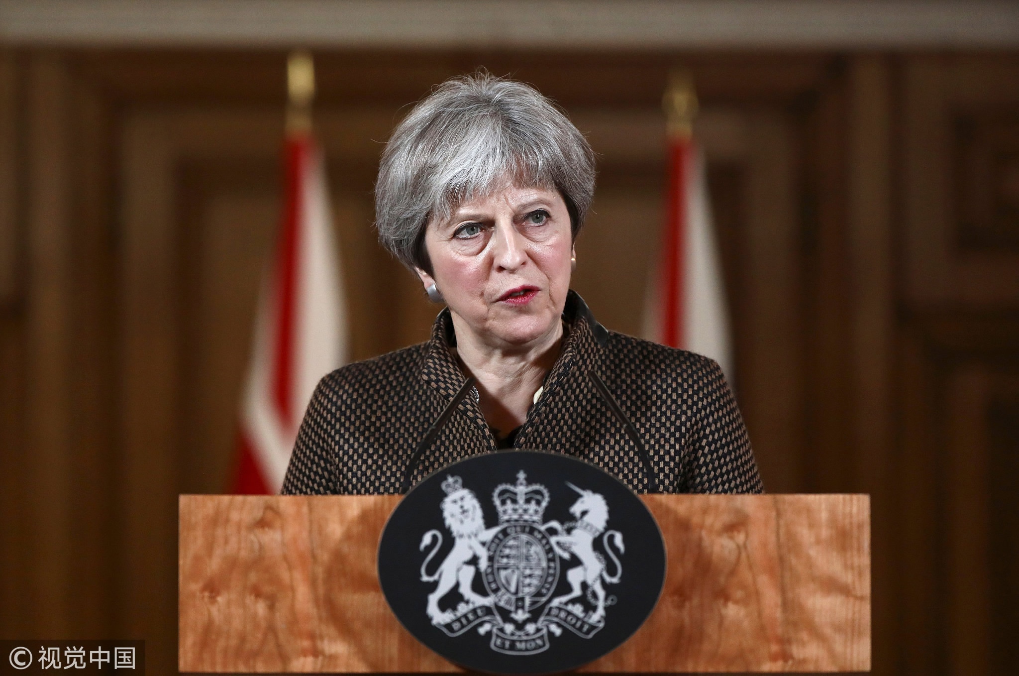 Britain's Prime Minister Theresa May gives a press conference at Downing Street in central London following British military action against Syria, April 14, 2018. /VCG Photo